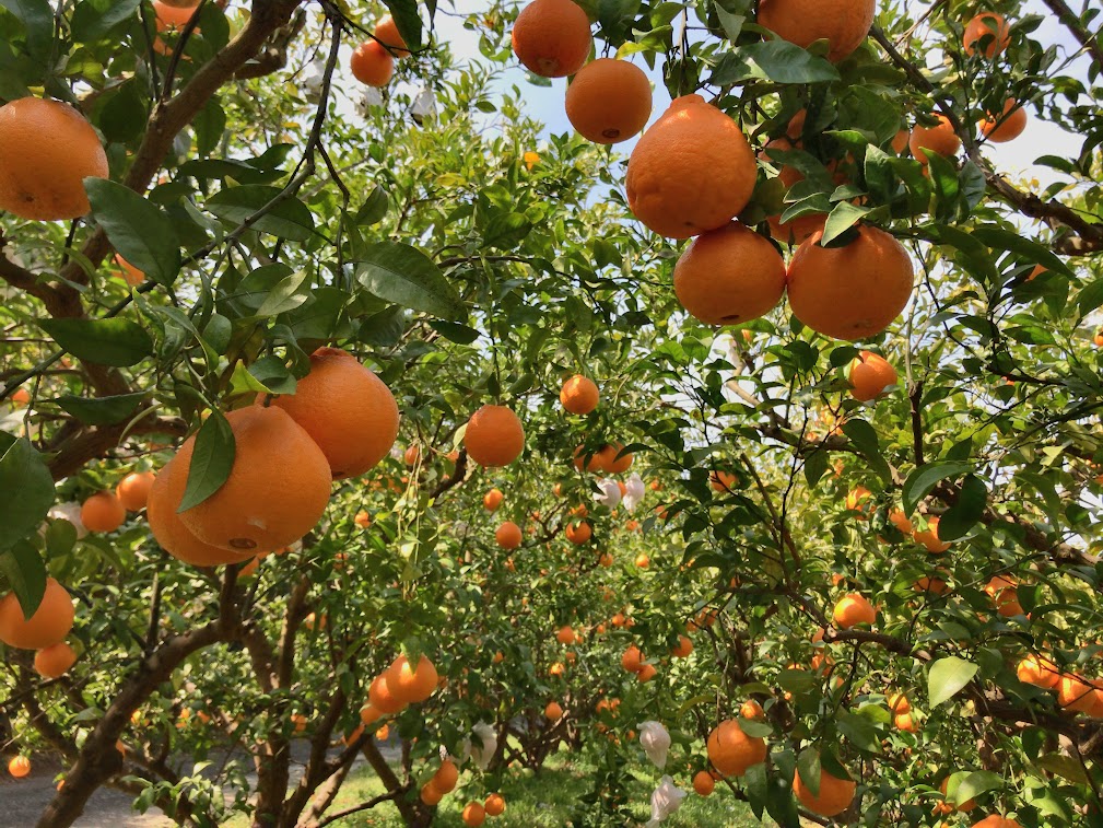 いちおう「樹上完熟!」なんて美味しそうなキャッチフレーズをつけておりますが別段難しいことをしているわけではなく、一般的な「早期収穫倉庫で熟成」方式では「倉庫が狭い酸味が抜けないやたらと腐る」という理由から、「成らせてても腐るし鳥にも食われるけど全体的にはちょっとマシ」、いわゆる「なるようになりやがれ」方式を採用しております。