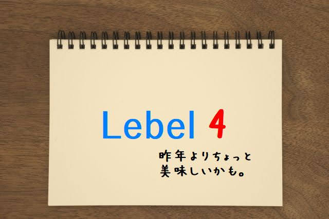 総合的には昨年のやや低調な仕上がりから例年並みに戻ったということで、今年の食味レベルは、昨年より1ランクアップの「レベル:4」としました。