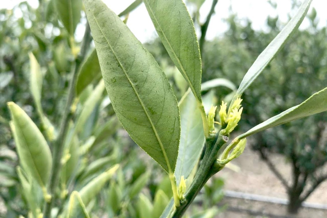そんな中みかんに新しい芽が出てきました。