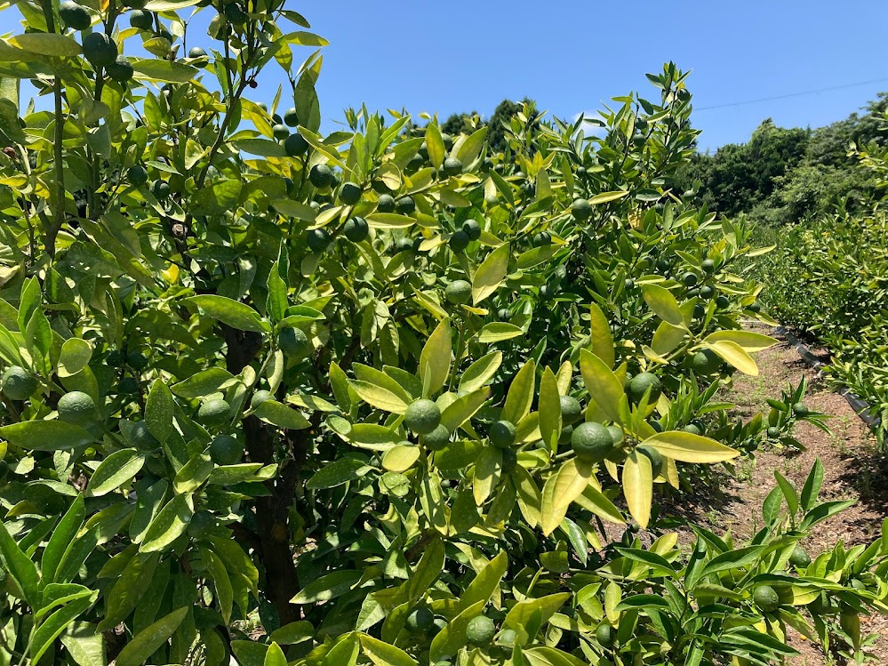 すでに葉っぱは巻き樹勢が低下してきております。マルチシート展張の前に潅水設備の修繕が急務です。